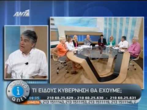 Παρέμβαση του Καθηγητή Πολιτικής Επιστήμης και πρώην πρύτανη του Παντείου Πανεπιστημίου κ. Γιώργου Κοντογιώργη στην εκπομπή "Πρωινό ΑΝΤ1", στις 17.6.12, για την κυβέρνηση της επομένης μέρας των εκλογών.